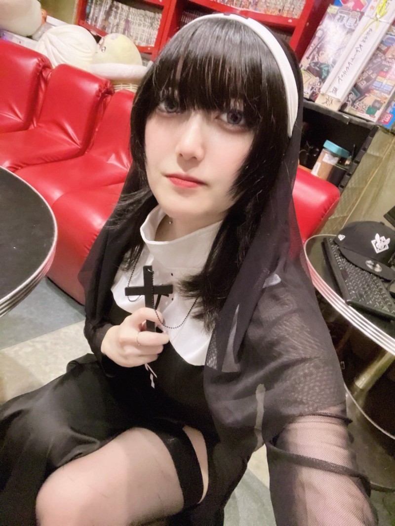 搭乗❕きりです☪ コスプレDAY1はシスターです✝︎ みんなのレーティングがあがるよう祈る🙏💫 すいさん、なのさん、ねねさんとお待ちしております💜 きり(@kiri_loop) #ダーツ #メイド #秋葉原 #ダーツ女子 https://t.co/4Zr7wjjuxy