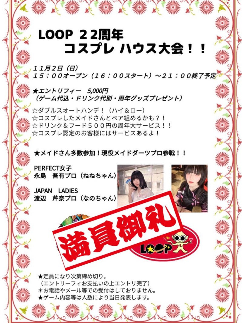 日曜日は㊗️22周年コスプレハウストーナメントの為、通常営業はございません。