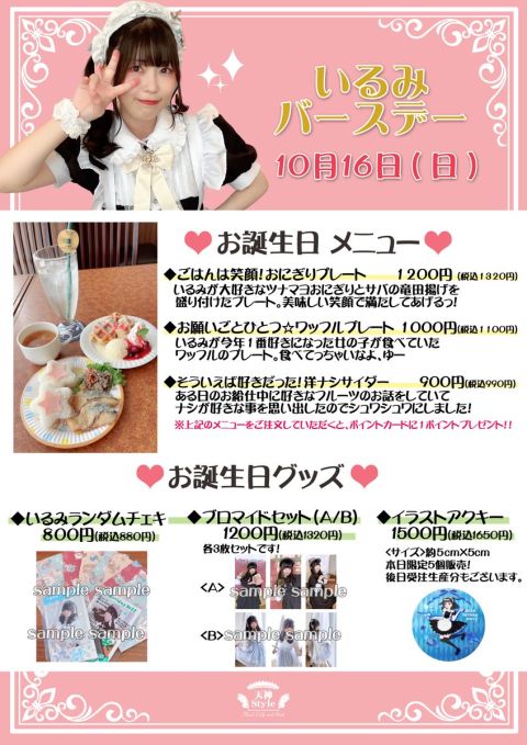 10月16日(日) 本日は🌟いるみバースデー🌟 12時から21時までいるみが選んだ衣装でお給仕いたします! 限定メニュー、グッズもご用意しております☺️ https://t.co/0iDfvuPyD5