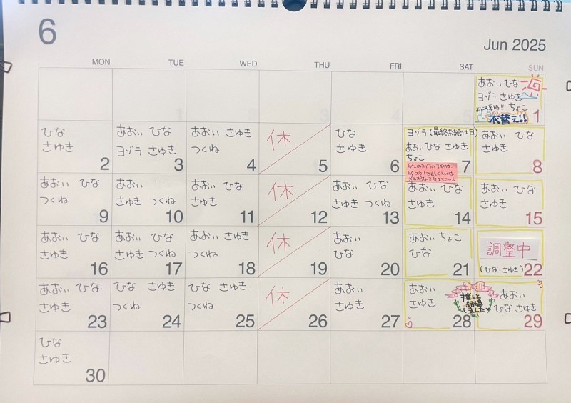 ☂6のお留守番予定衚☂ 1日 衣替え🌻 28日.29日掚しず結婚したした👰 ※22日は決たり次第ポストしたす 25日(日)より2週間埌たでのご予玄受付ずなりたす 7日(土)のご予玄に関したしおは、別で曎新したポストをご参照くださいたせ。 ご垰宅ご予玄お埅ちしおおりたす✚🐌 https://t.co/VZkUrr8T8D