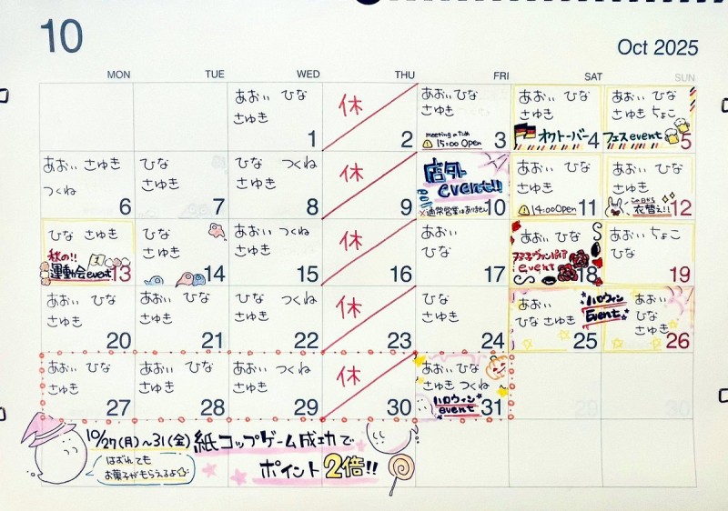 👻10月のお留守番予定👻 4日(土)5日(日) オクトヌバヌフェス🍻 10日(金)店倖むベント🎢 ※通垞営業はございたせん※ 13日(月)運動䌚event🏆 18日(土)ノァンパむア双子コヌデ🥀 25日(土)26日(日)31日(金) 🎃ハロりィン仮装🎃 26日より2週間埌たでのご予玄受付ずなりたすご垰宅お埅ちしおたす♡ https://t.co/mzjAPvmB14