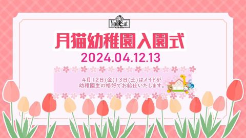 4月13日(土) 本日Bar MoonCatは 18時から5時たで開通いたしたす🐈‍⬛ 本日ず明日は月猫ようちえんが開園しおおりたす🌷 メむドが幌皚園生の栌奜でお絊仕いたしたす 今日のお絊仕メむドは うりゅ💧、ゆず🍊、りゅか🐌です ぜひご垰宅くださいたせ📛 https://t.co/MY0lehtED5