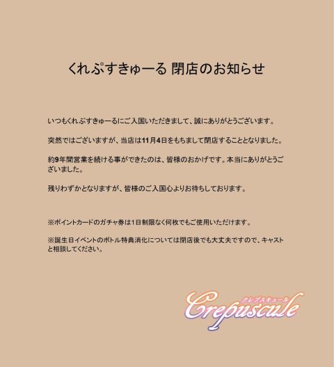 くれぷ閉店まであと2日〜~~~! 悔い無く楽しもうね💪🥹🥹💖 現在2席空いてます https://t.co/tlHZ6Nrqlh