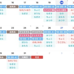 | 営業時間 | 月〜木18:00~23:30 金18:00~5:00 土17:00~5:00 日17:00~23:30 | ||||||||||||||