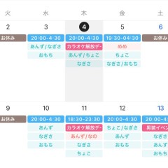 | 営業時間 | 月〜木18:00~23:30 金18:00~5:00 土17:00~5:00 日17:00~23:30 | ||||||||||||||