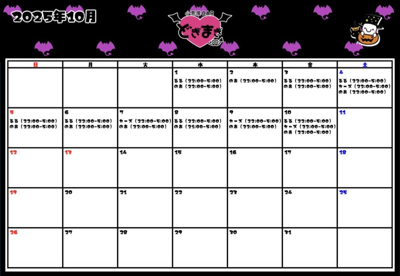 | 営業時間 | 18:00-5:00 | ||||||||||||||