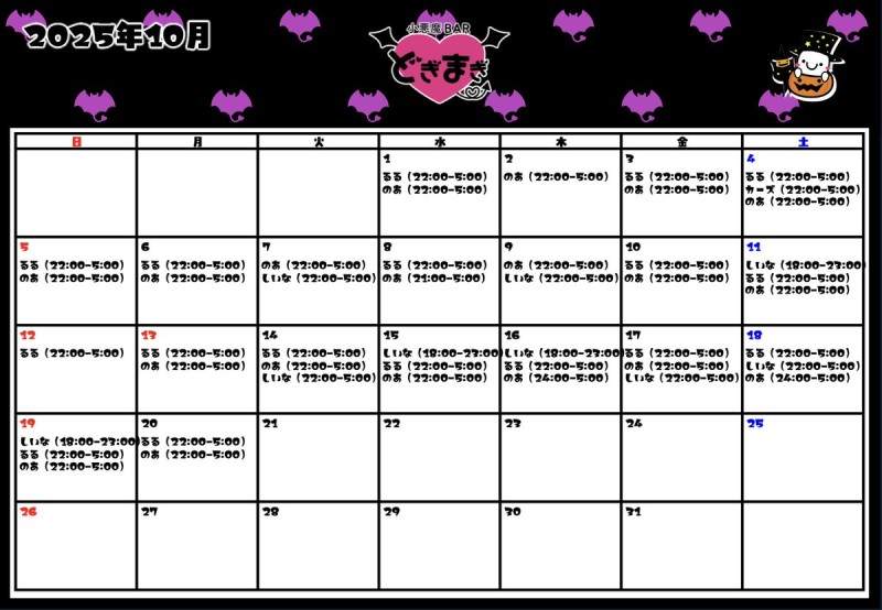 😈10月✞✟出勤予定表😈