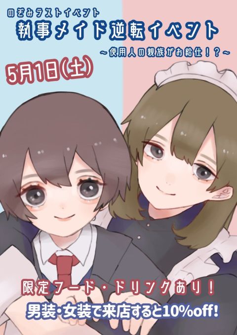 ❣️イベント情報❣️ 5月1日(土) 執事メイド逆転開催💓 イベント限定フードやドリンクもあります❣️ 使用人の親族に逢いに来てみてはいかがでしょうか❓❤ お楽しみに🎶 #英國喫茶RoyalLily https://t.co/gX3jqXffXC