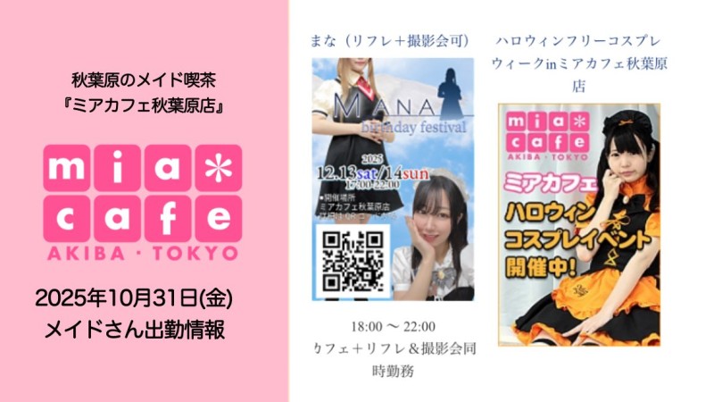 👑本日10月31日(金)のミアカフェ秋葉原店