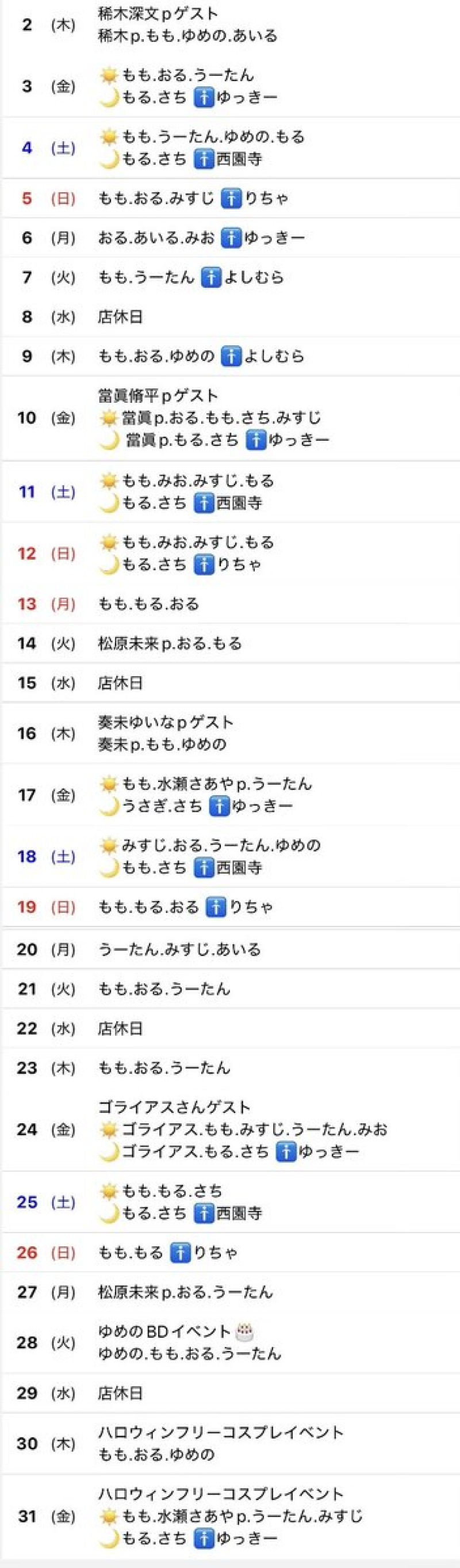 🎃10月シフト表🕸