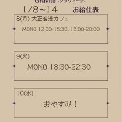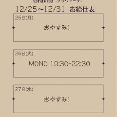 | 営業時間 | ・平日 18:30~22:30 ・土曜日 12:30~22:30 ・日曜日 12:00~20:00 | ||||||||||||||