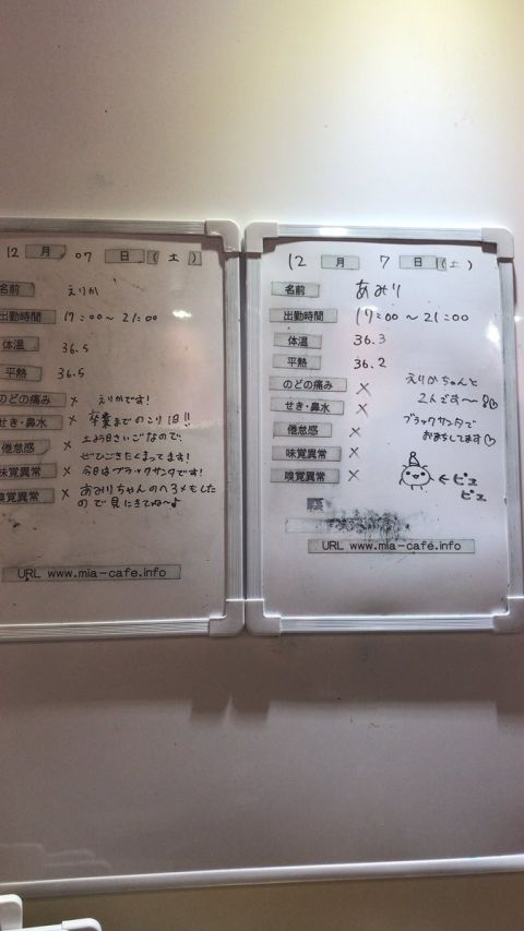 | 営業時間 | 静岡店は出勤スタッフがいれば営業です! 基本的に 12時~22時が営業時間です! ●静岡店のツイッター @shizuokamaidsan https://twitter.com/shizuokamaidsan ●ミア静岡店の営業曜日&営業時間● ☆月〜木 14:00〜22:00(最終受付20:00) ☆金曜日 12:00〜22:00(最終受付21:00) ☆土・日・祝 12:00〜22:00(最終受付21:00) 営業時間外はオンライン予約にてお願いいたします。 PC・携帯共通 → http://m-kanzume.moo.jp/yoyaku2/user.cgi ●ミアガイド出勤状況● スマホ・PC → 後日公開予定 ★静岡店スタッフによるミア甲府店でのメイドカフェリアル営業★ ☆不定期 サイトにてご確認ください。 http://market.chu.jp/schedule1/sche37.cgi | ||||||||||||||