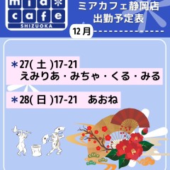 | å¶æ¥æé | é岡åºã¯åºå€ã¹ã¿ãããããã°å¶æ¥ã§ãïŒ åºæ¬çã«ã12æïœ22æãå¶æ¥æéã§ãïŒ âé岡åºã®ãã€ãã¿ãŒã@shizuokamaidsan https://twitter.com/shizuokamaidsan âãã¢é岡åºã®å¶æ¥ææ¥ïŒå¶æ¥æéâ âæãæšã14:00ã22:00(æçµåä»20:00) âéææ¥ã12:00ã22:00(æçµåä»21:00) âåã»æ¥ã»ç¥ã12:00ã22:00(æçµåä»21:00) å¶æ¥æéå€ã¯ãªã³ã©ã€ã³äºçŽã«ãŠãé¡ãããããŸãã ïŒ°ïŒ£ã»æºåž¯å ±éãâãhttp://m-kanzume.moo.jp/yoyaku2/user.cgi âãã¢ã¬ã€ãåºå€ç¶æ³â ã¹ããã»ïŒ°ïŒ£ãâãåŸæ¥å ¬éäºå® â é岡åºã¹ã¿ããã«ãããã¢ç²åºåºã§ã®ã¡ã€ãã«ãã§ãªã¢ã«å¶æ¥â âäžå®æ ããµã€ãã«ãŠã確èªãã ããã ãhttp://market.chu.jp/schedule1/sche37.cgi | ||||||||||||||