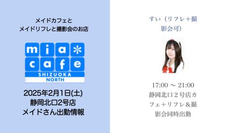 本日2月1日(土)のミアカフェ静岡北口2号店