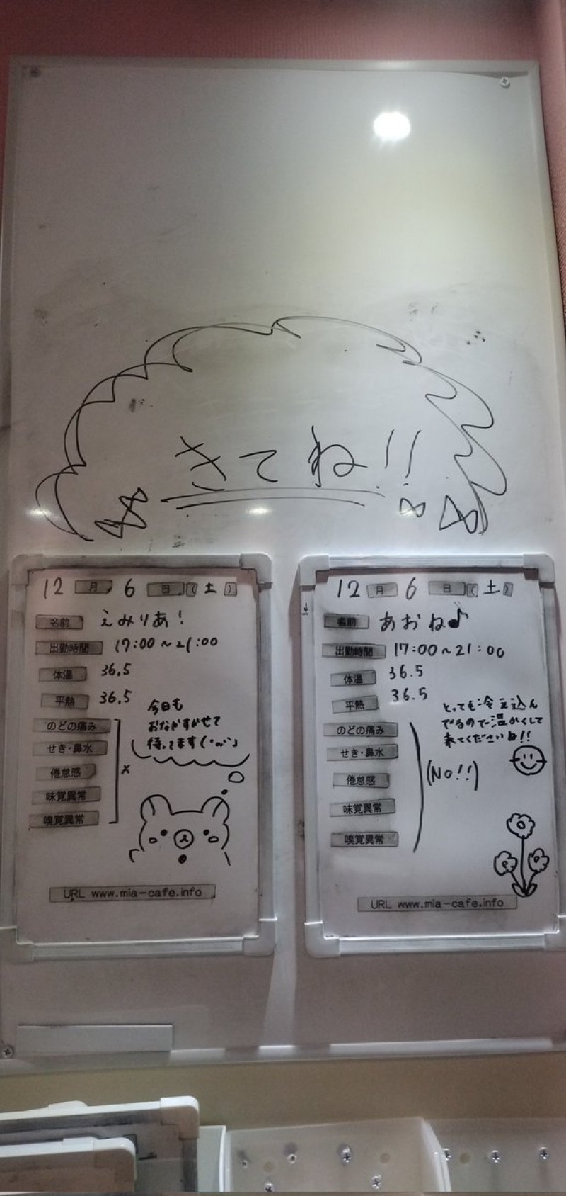 | 営業時間 | 静岡店は出勤スタッフがいれば営業です! 基本的に 12時~22時が営業時間です! ●静岡店のツイッター @shizuokamaidsan https://twitter.com/shizuokamaidsan ●ミア静岡店の営業曜日&営業時間● ☆月〜木 14:00〜22:00(最終受付20:00) ☆金曜日 12:00〜22:00(最終受付21:00) ☆土・日・祝 12:00〜22:00(最終受付21:00) 営業時間外はオンライン予約にてお願いいたします。 PC・携帯共通 → http://m-kanzume.moo.jp/yoyaku2/user.cgi ●ミアガイド出勤状況● スマホ・PC → 後日公開予定 ★静岡店スタッフによるミア甲府店でのメイドカフェリアル営業★ ☆不定期 サイトにてご確認ください。 http://market.chu.jp/schedule1/sche37.cgi | ||||||||||||||